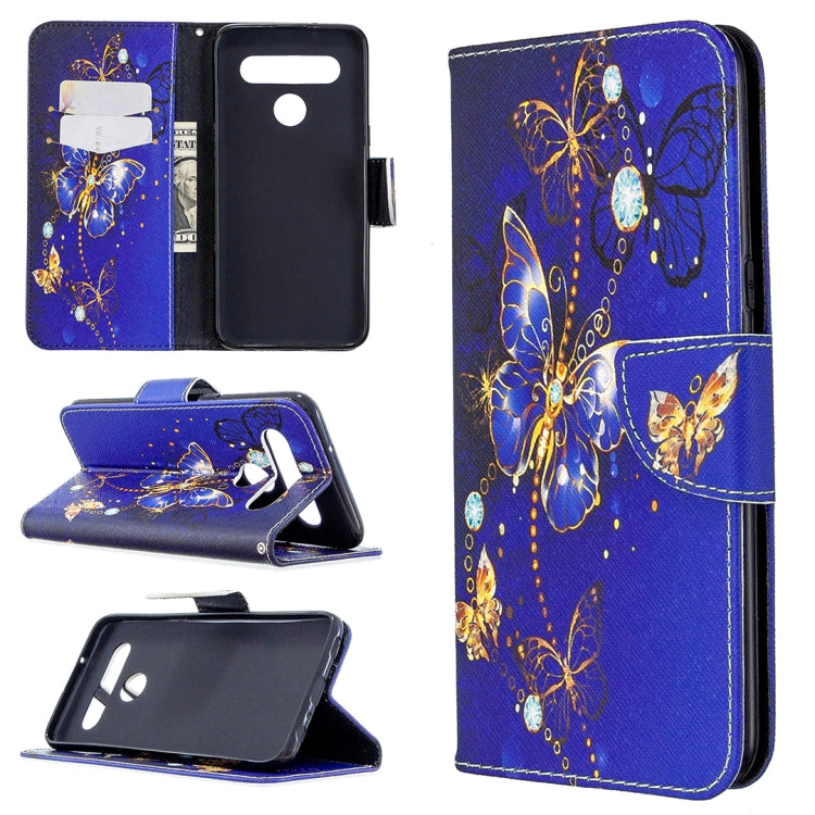 Estuche de Cuero para LG K61 con Tapa Horizontal, Soporte, Ranuras y Billetera (Mariposa Púrpura)