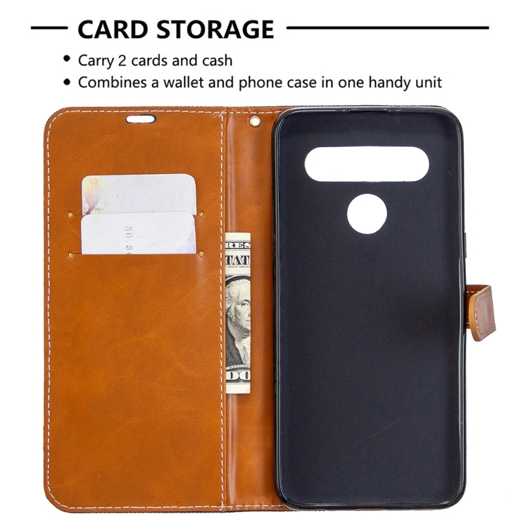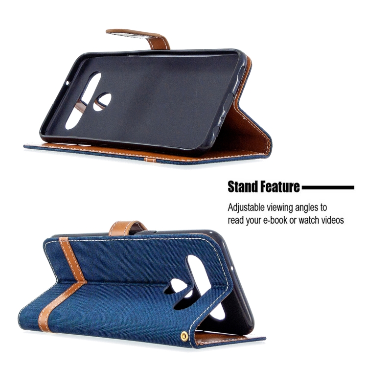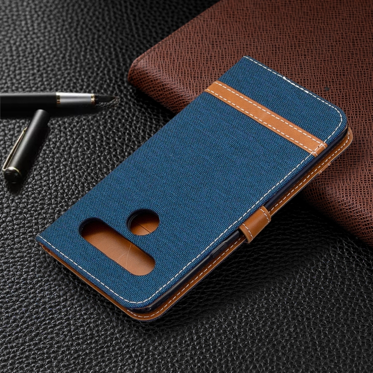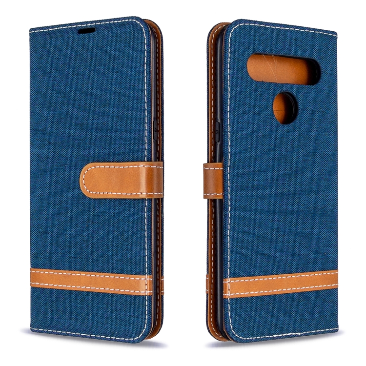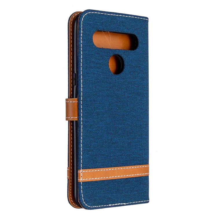 Funda de Cuero para LG K61 con Tapa Horizontal, Textura Mezclilla, Soporte, Ranuras y Cordón (Azul Marino)