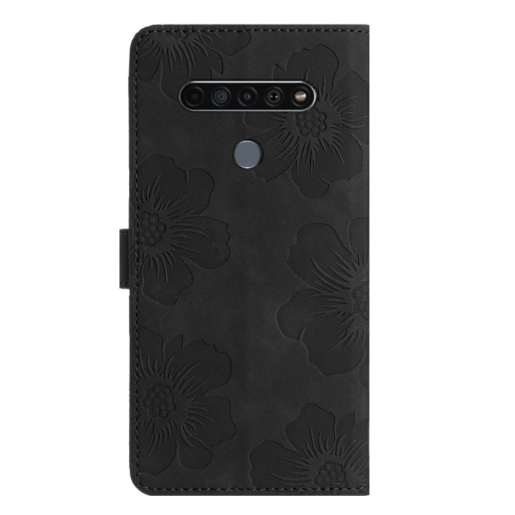 Funda de Cuero para LG K61 con Estampado de Flores en Relieve (Negro)