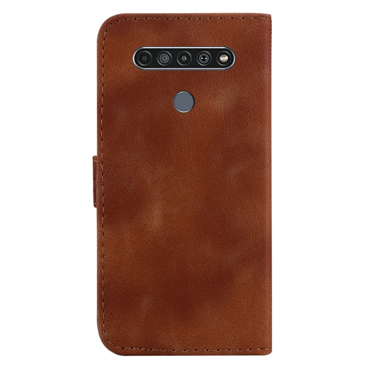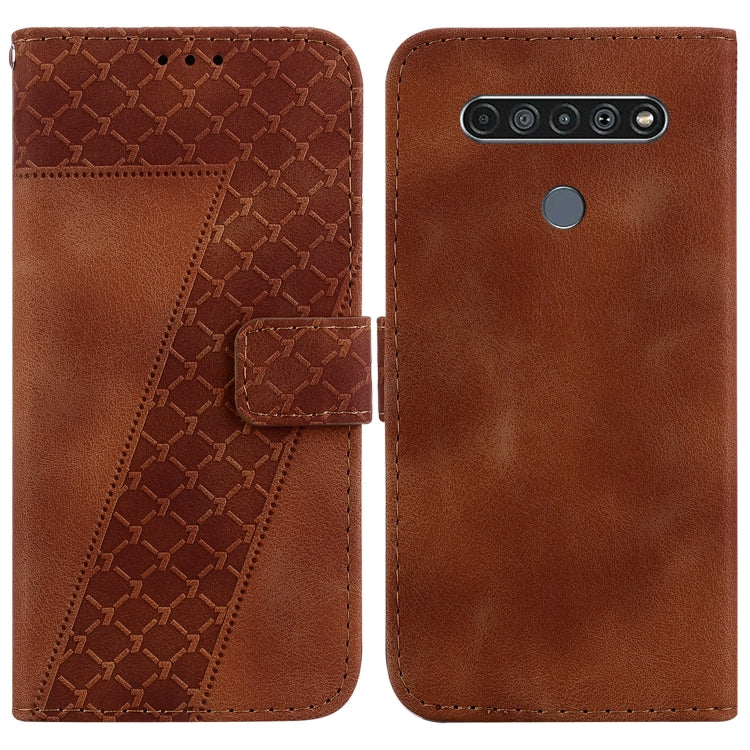 Funda de Teléfono LG K61 Cuero En Relieve en Forma de 7 (Marrón)