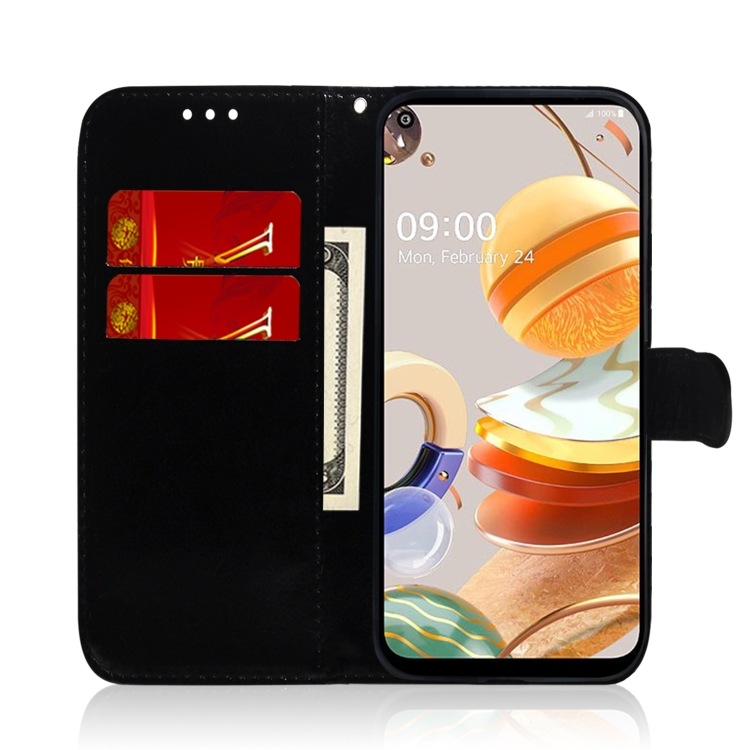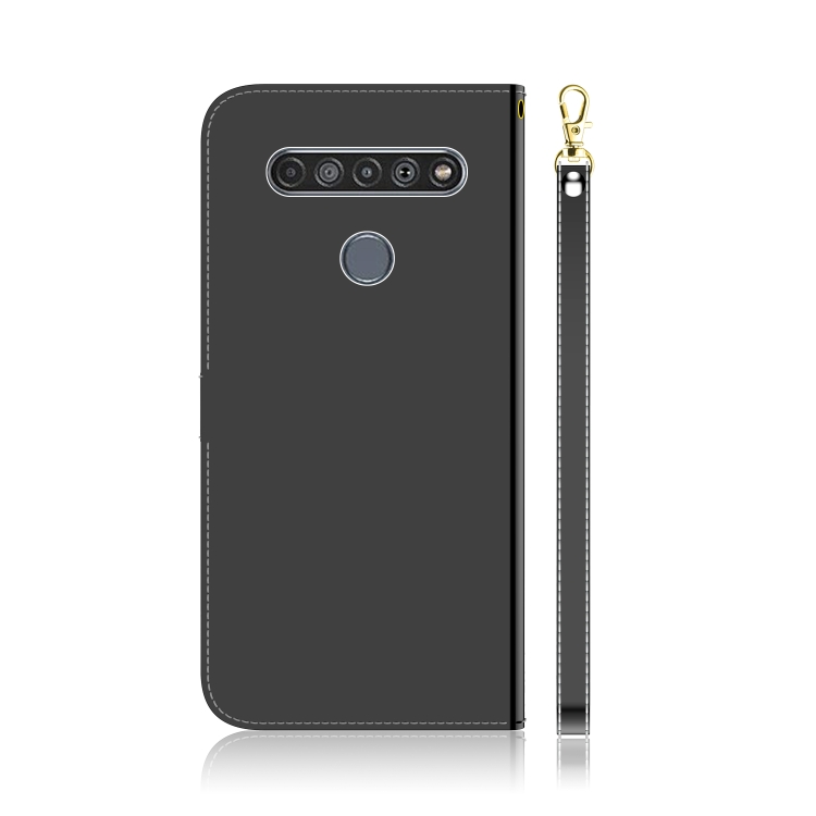 Funda de Cuero para LG K61 Limited Mirror Surface con Tapa Horizontal, Soporte, Ranuras para Tarjetas y Cordón (Negro)