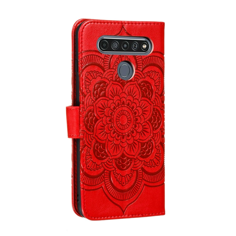Funda de Cuero PU para LG K61 Mandala con Diseño en Relieve, Tapa Horizontal, Soporte, Ranuras para Tarjetas y Cordón (Rojo)