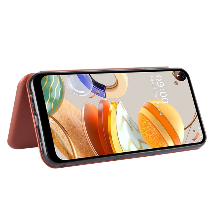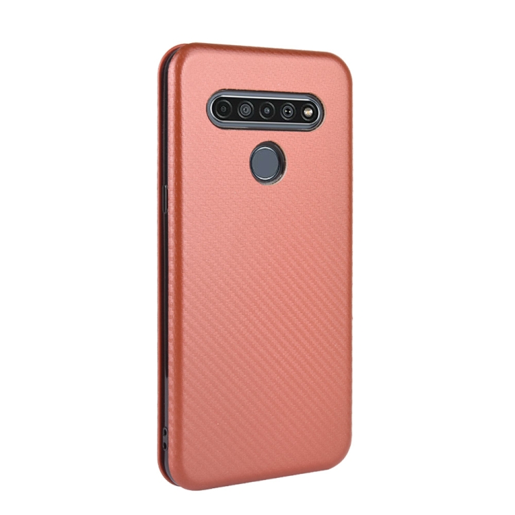 Funda de Cuero para LG K61 Q61 con Tapa Magnética Horizontal y Ranura para Tarjeta (Marrón)