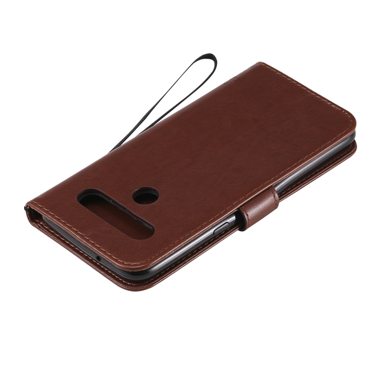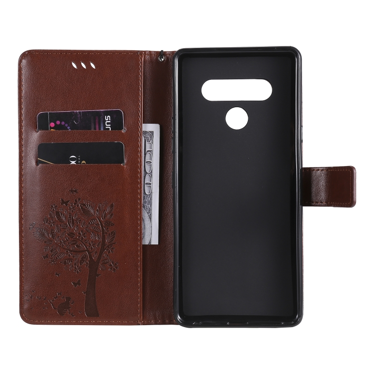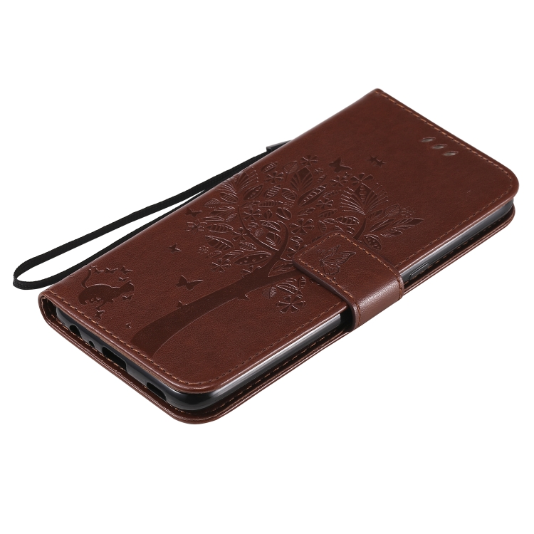 Funda de Cuero para LG K61 Tree & CAT con Tapa Horizontal, Soporte, Ranuras para Tarjetas, Billetera y Cordón (Café)