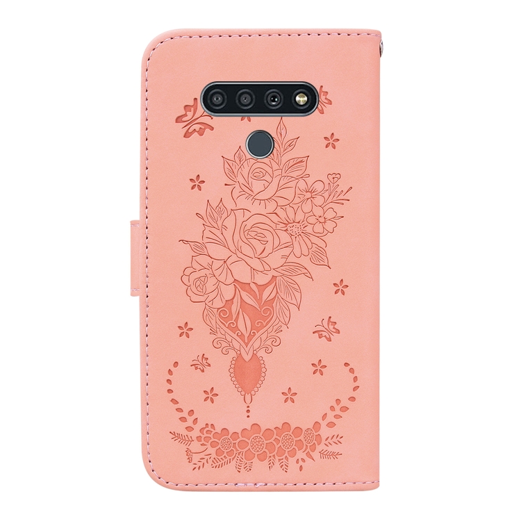 Funda de Cuero para LG K71 Stylo 6 con Relieve de Mariposa (Rosa)