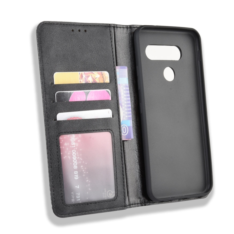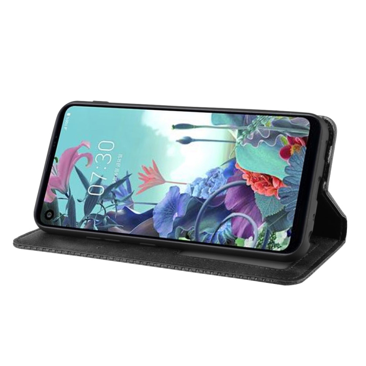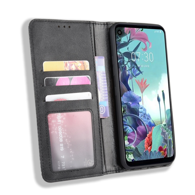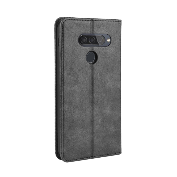 Funda de Cuero para LG Q70 con Hebilla Magnética, Tapa Horizontal, Soporte, Ranuras para Tarjetas y Marco de Fotos (Negro)