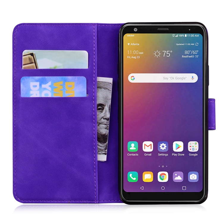 Funda de Cuero para LG Stylo 5 con Tapa Horizontal, Soporte, Ranuras para Tarjetas y Billetera (Púrpura)