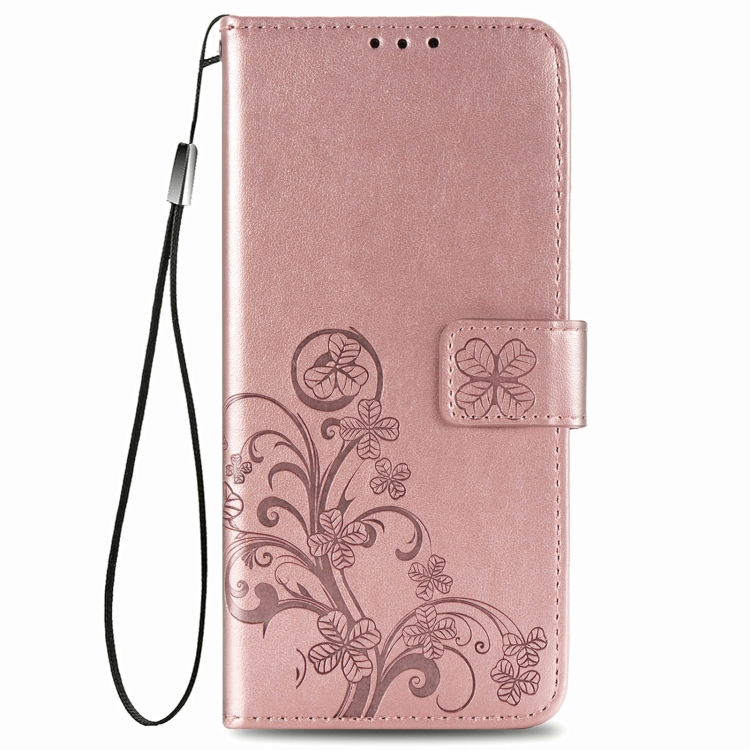 Funda de Cuero para LG Stylo 7 con Cierre de Cuatro Hojas, Hebilla, Ranura para Tarjeta y Soporte (Oro Rosa)