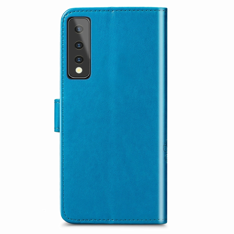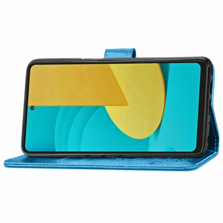 Funda de Cuero para LG Stylo 7 con Cierre de Cuatro Hojas, Ranura para Tarjeta y Soporte (Azul)