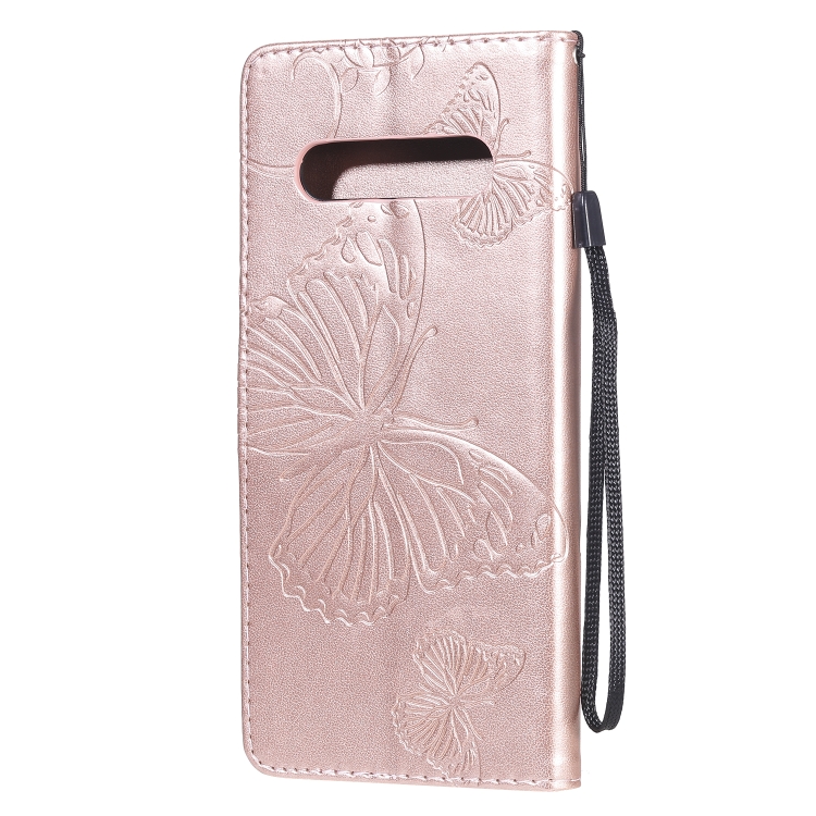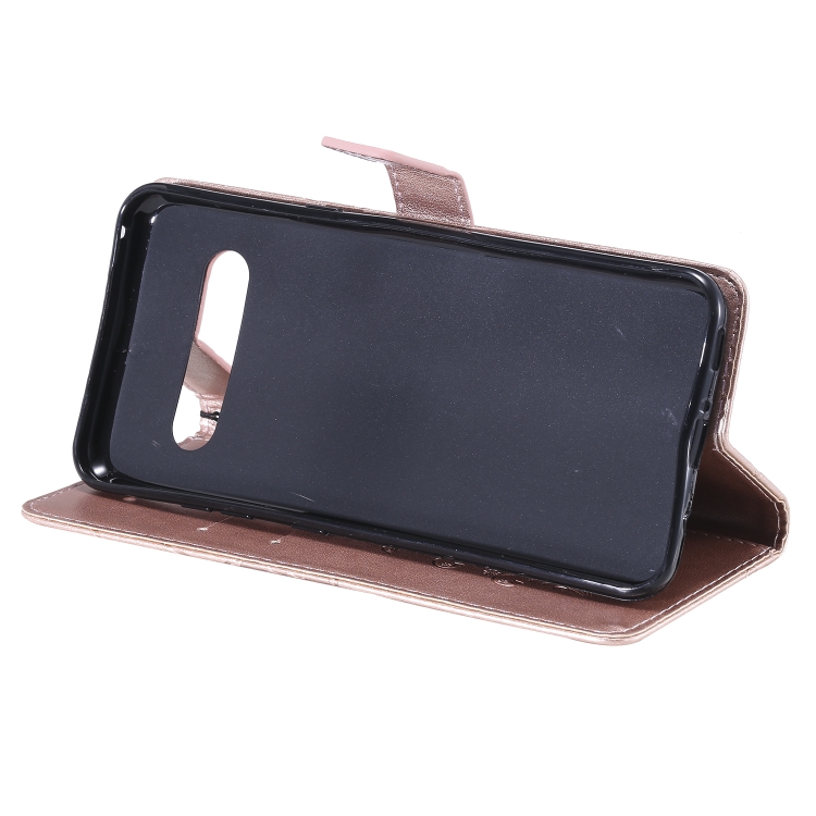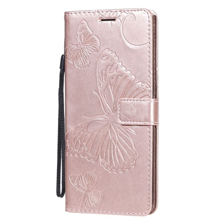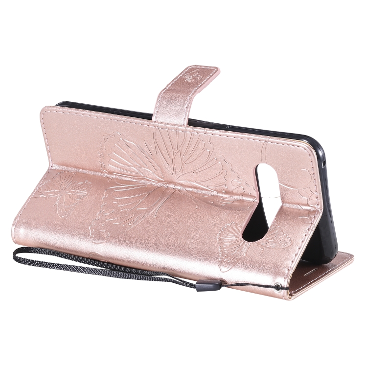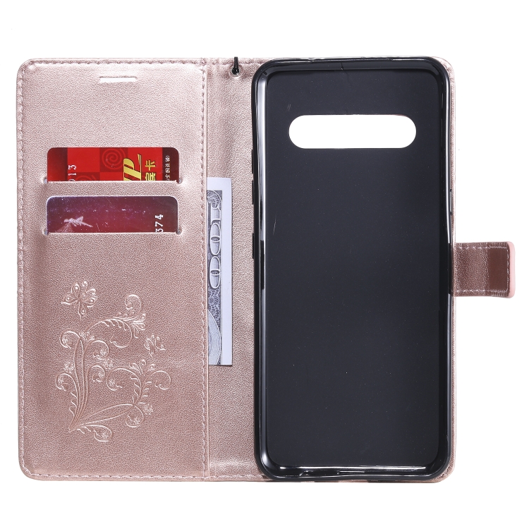 Funda de Cuero para LG V60 con Mariposas 3D, Tapa Horizontal, Soporte, Ranura para Tarjeta y Billetera (Oro Rosa)