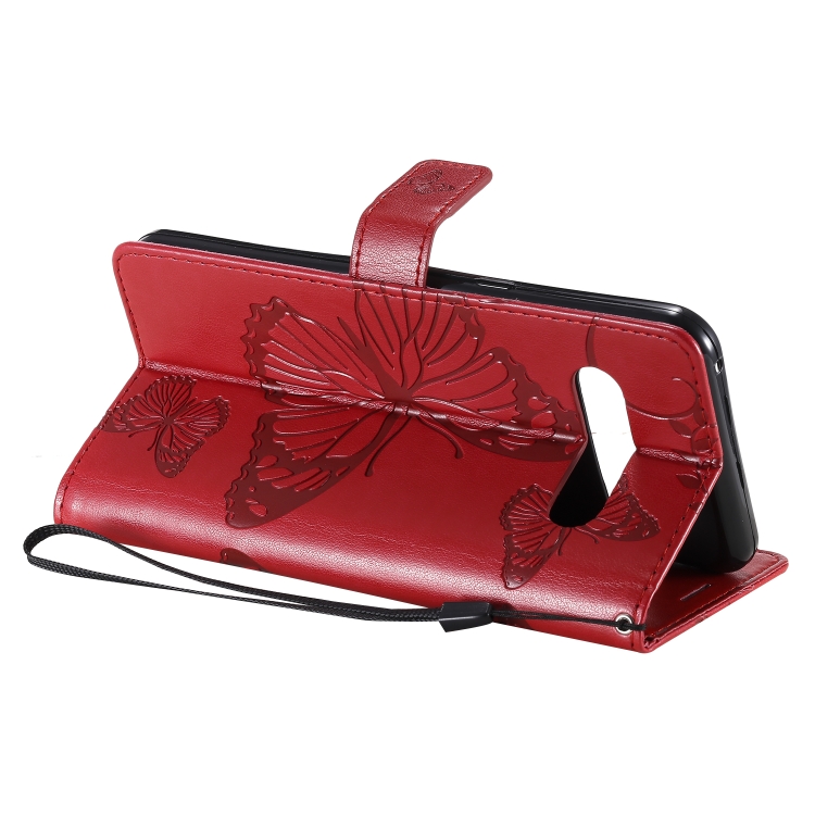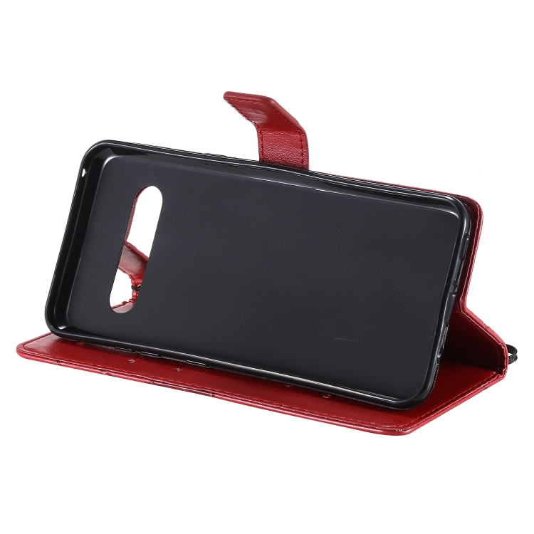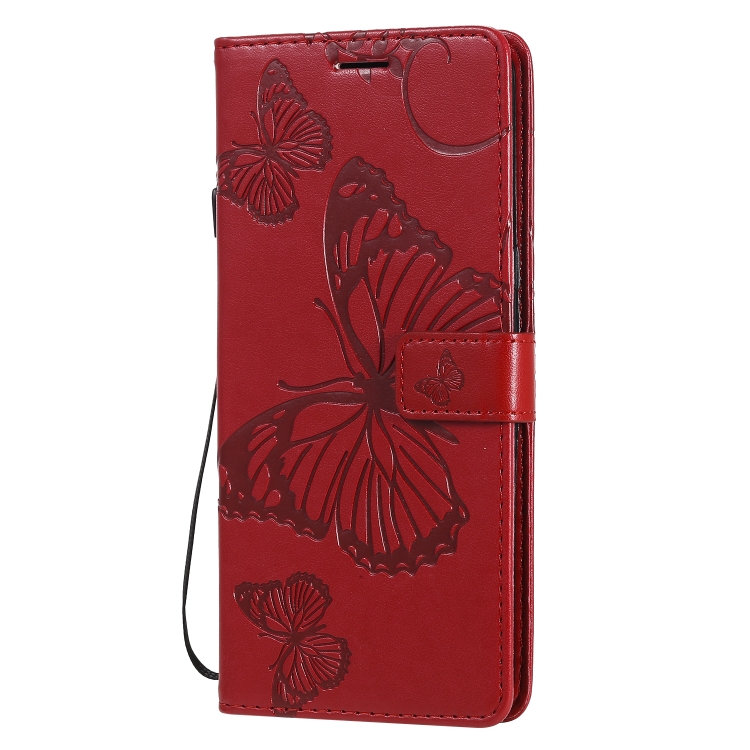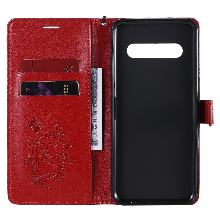 Funda de Cuero para LG V60 3D Mariposas con Tapa Horizontal, Soporte, Ranura para Tarjeta y Billetera (Rojo)