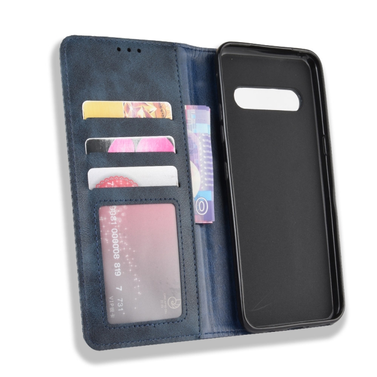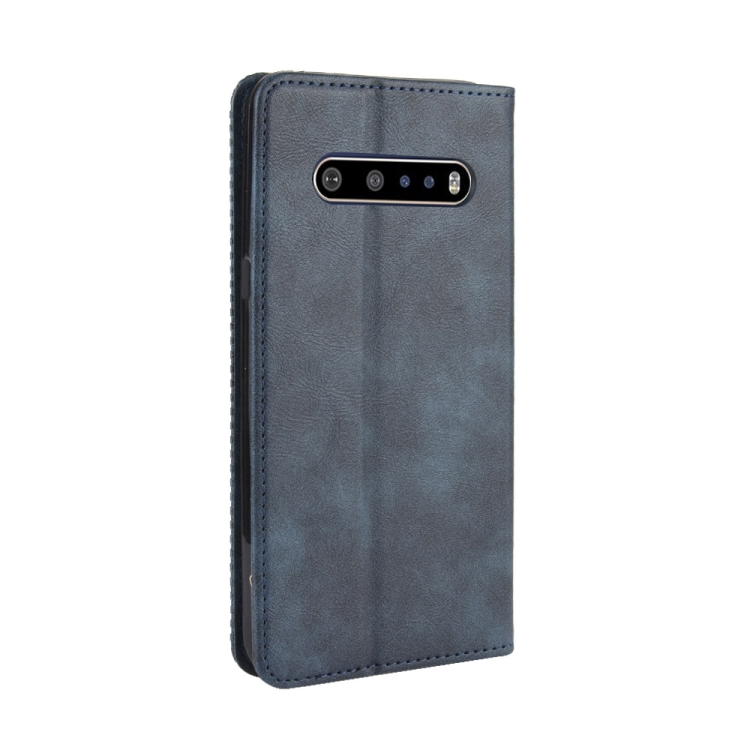 Funda de Cuero para LG V60 Thinq 5G con Hebilla Magnética, Tapa Horizontal, Soporte, Ranuras para Tarjetas y Marco de Fotos (Azul)