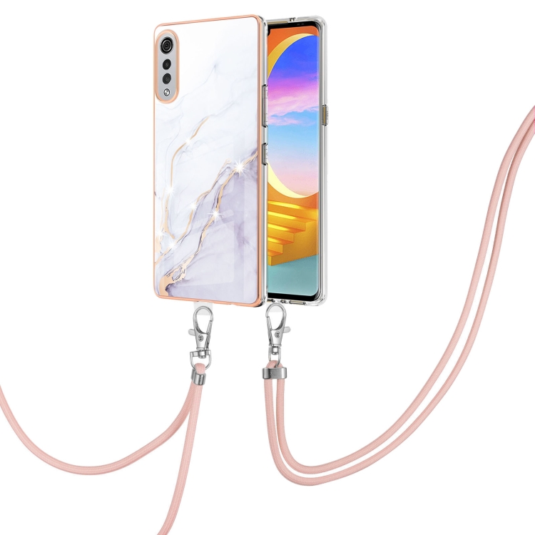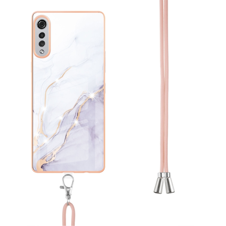 Funda TPU Galvanoplastia Patrón Mármol para LG Velvet 4G 5G G9 a Prueba de Golpes con Cordillero (Blanco)