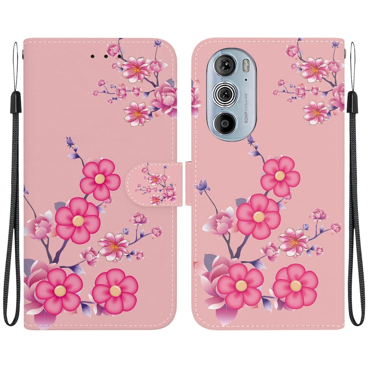 Estuche de Cuero para Motorola Edge + (2022) con Dibujo Coloreado y Textura de Cristal (Flores de Cerezo)