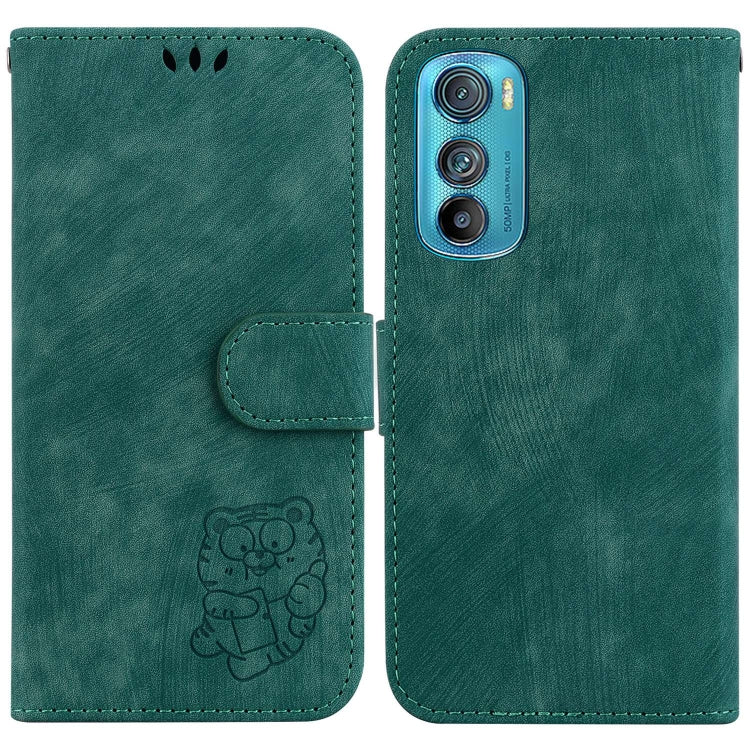 Funda para Motorola Edge 30 de Cuero con Relieve Little Tiger (Verde)