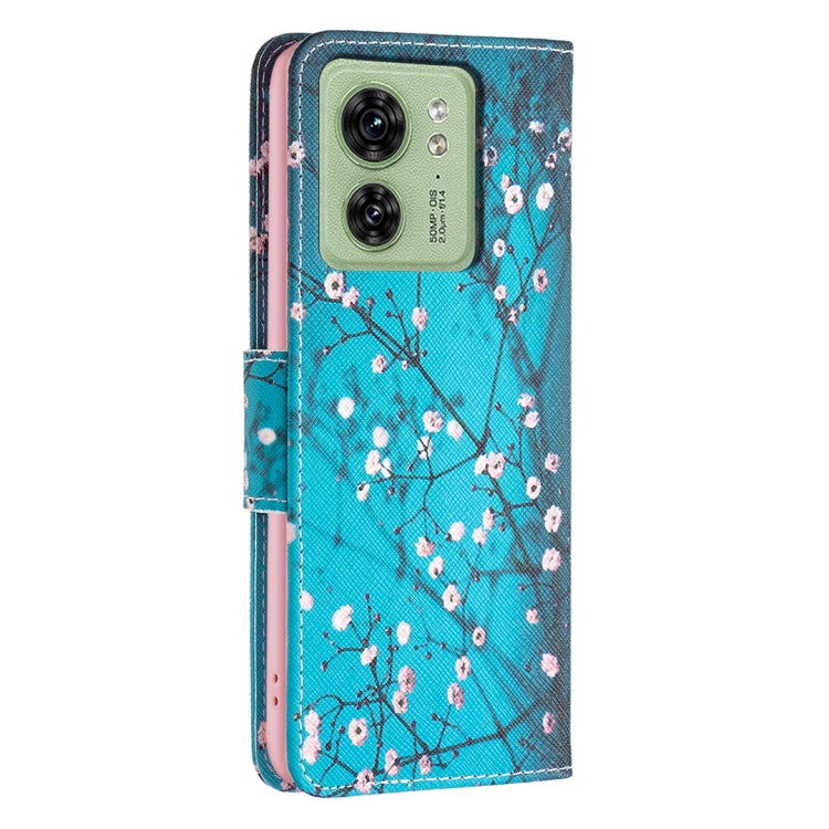 Estuche de Cuero para Motorola Edge 40 con Patrón Dibujo Coloreado (Flor de Ciruelo)