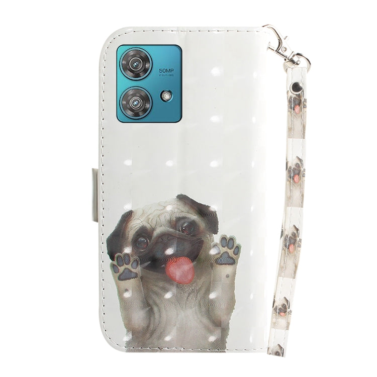 Funda de Cuero para Motorola Edge 40 Neo con Tapa Horizontal y Diseño 3D (Pug)