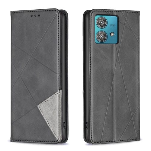 - 1x Funda de Teléfono Motorola Edge 40 Neo Cuero Magnético Textura Rombo (Negro)