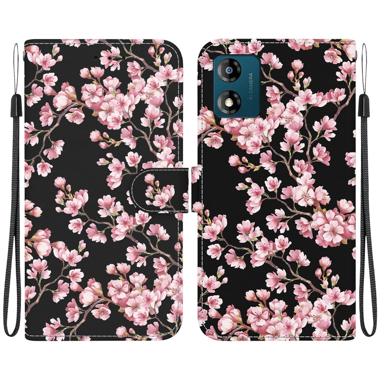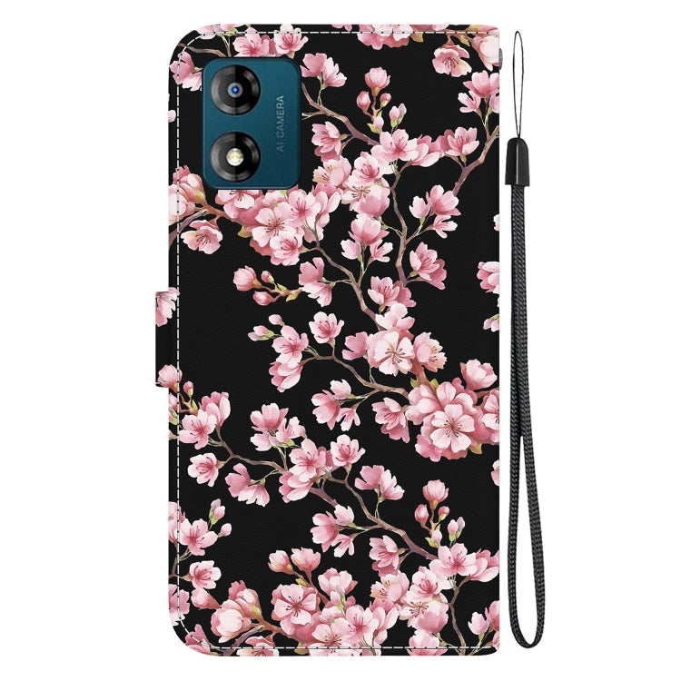 Funda de Cuero Motorola Moto E13 con Dibujo Coloreado y Textura de Cristal (Flor de Ciruelo)