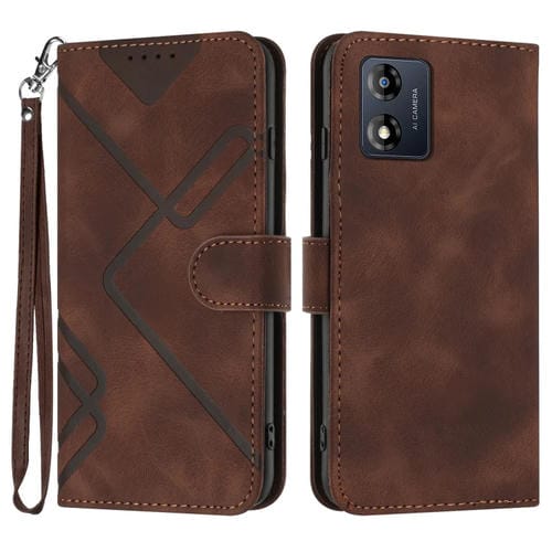 Funda de Cuero para Motorola Moto E13 Line Pattern Skin Feel para Teléfono (Café)