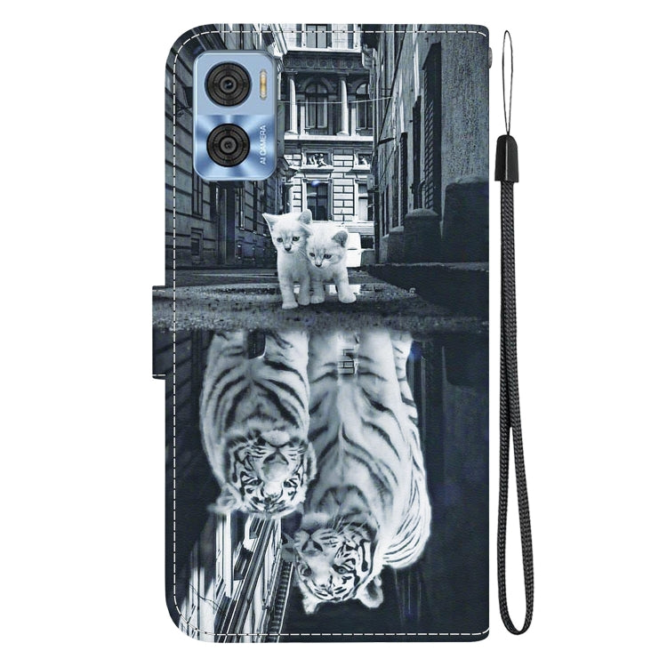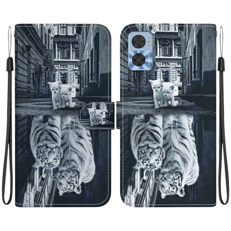 Funda para Motorola Moto E22 / E22I de Cuero con Dibujo Coloreado y Textura de Cristal (Reflejo de Tigre Gato)