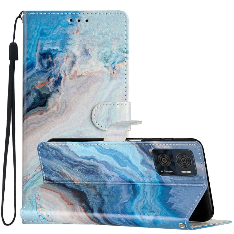 Estuche para Motorola Moto E22 de Cuero con Dibujo Coloreado Mármol Azul