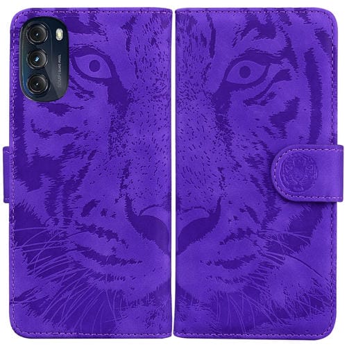 Funda de Cuero para Motorola Moto G 2022 Volteo Horizontal con Patrón de Tigre (Púrpura)