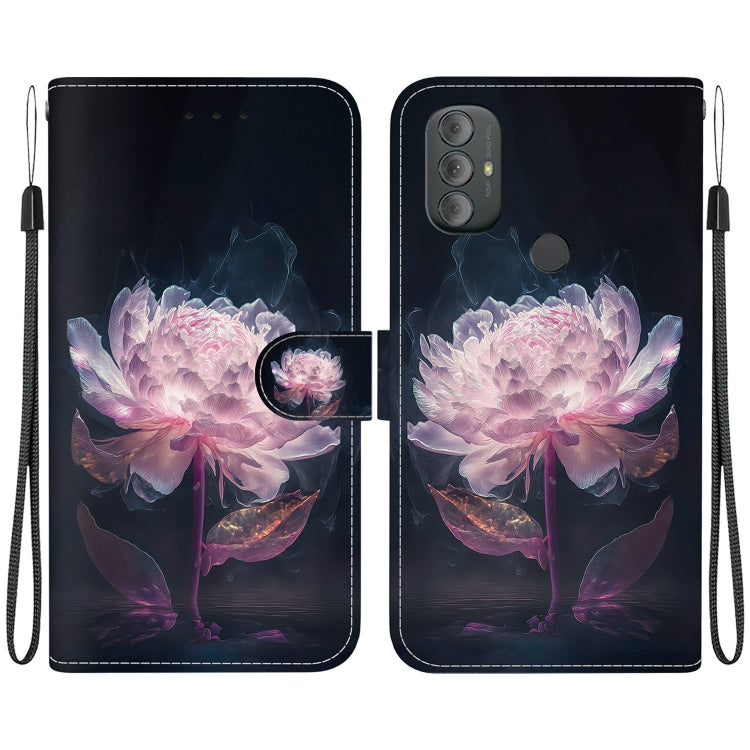 Estuche de Cuero para Motorola Moto G Power 2022 con Dibujo Coloreado y Textura de Cristal (Peonía Púrpura)