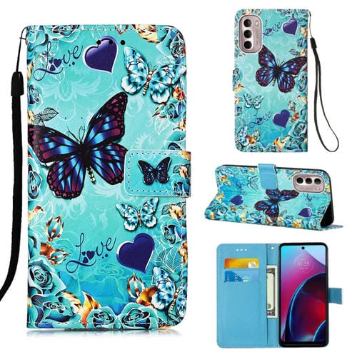 Funda para Motorola Moto G Stylus 5G 2022 Cuero Tejido Liso Dibujo Mariposa Cardíaca
