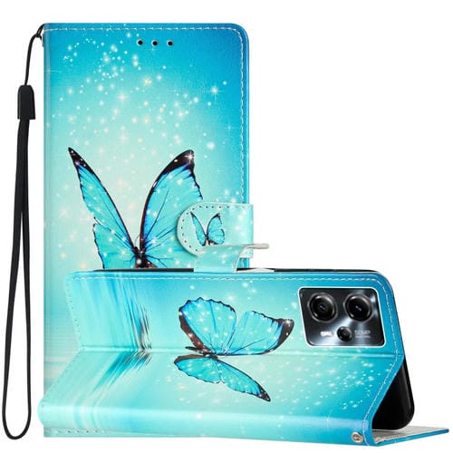 Estuche para Motorola Moto G13 / G23 / G53 de Cuero con Dibujo Coloreado (Mariposa Azul)