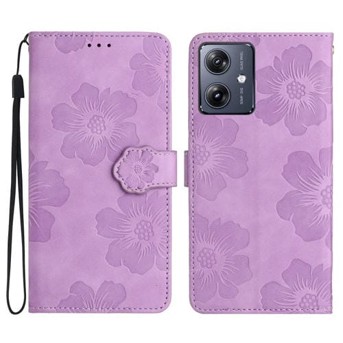 Funda de Cuero para Motorola Moto G14 4G con Estampado de Flores (Púrpura)