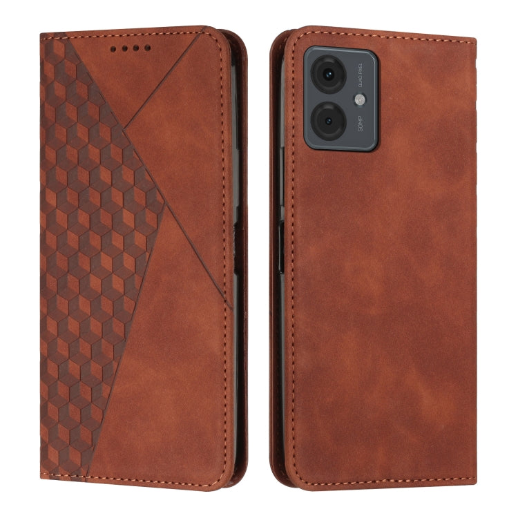 Funda de Cuero Magnético para Motorola Moto G14 Diamond Splicing Skin Feel (Marrón)