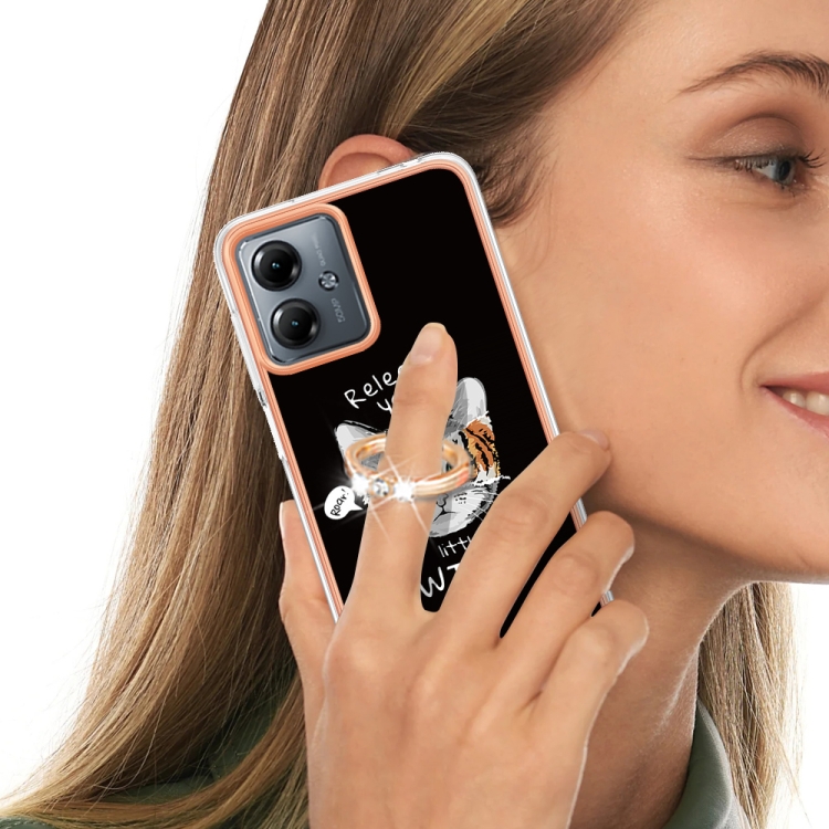 Estuche para Motorola Moto G14 Imd Doble Cara con Galvanoplastia y Soporte para Anillo (Crecimiento Natural)
