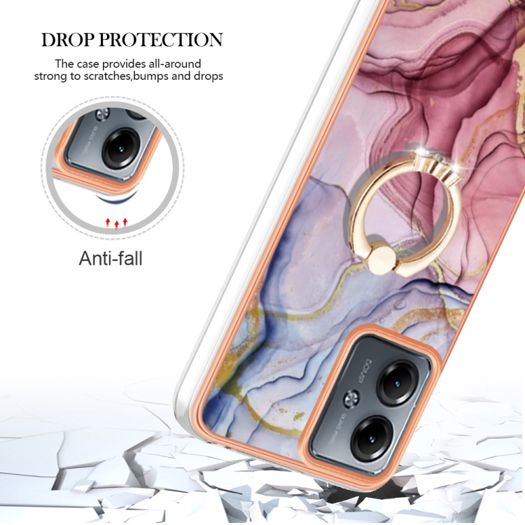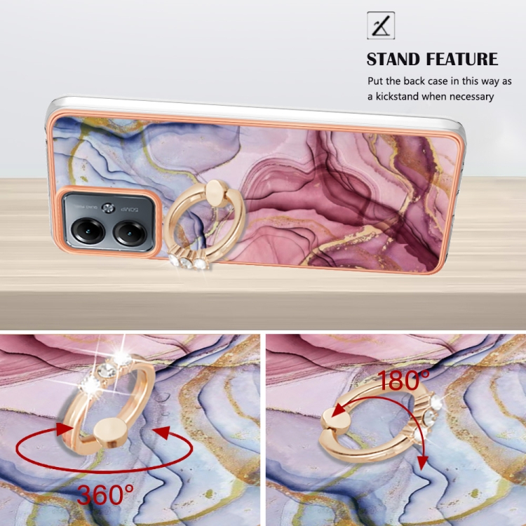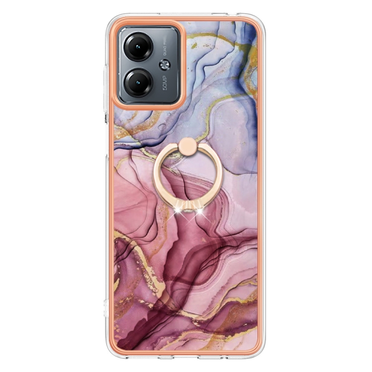 Estuche para Motorola Moto G14 Imd Doble Cara Mármol Galvanizado con Anillo (Rose Red)