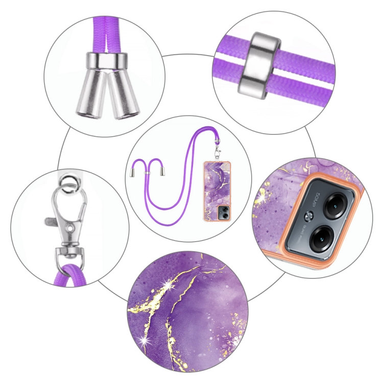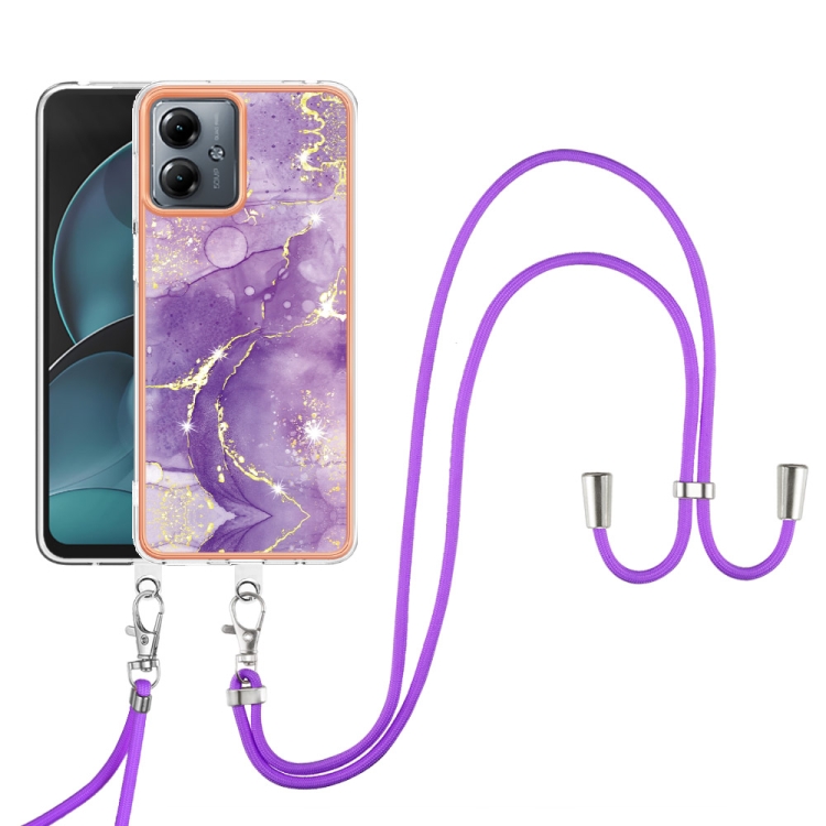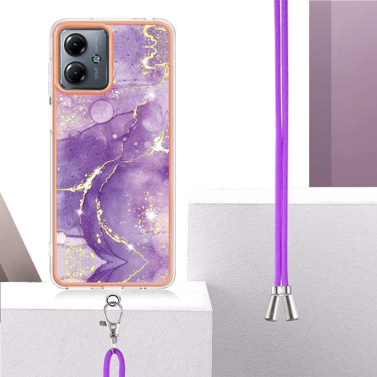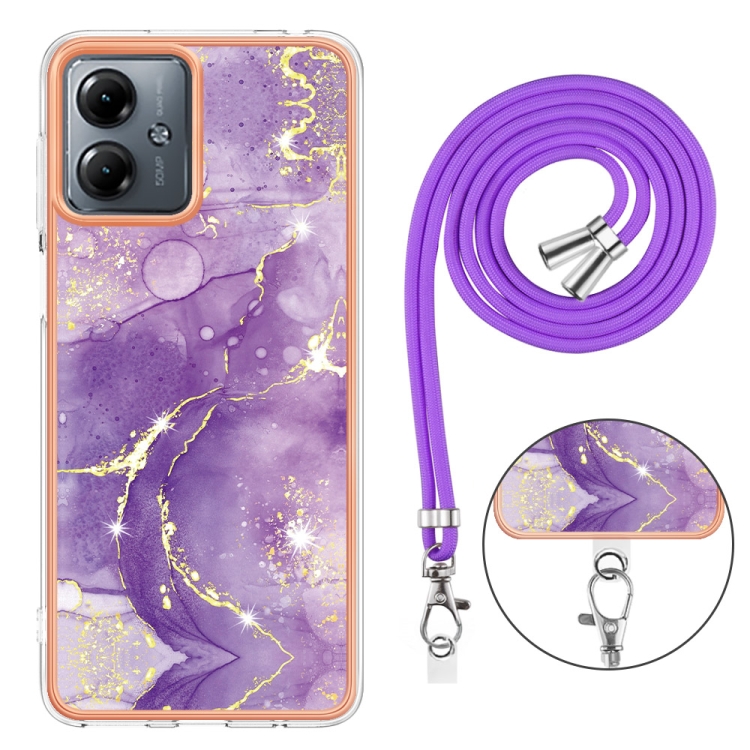 Estuche para Motorola Moto G14 IMD Doble Cara Mármol Galvanizado con Cordón (Púrpura)