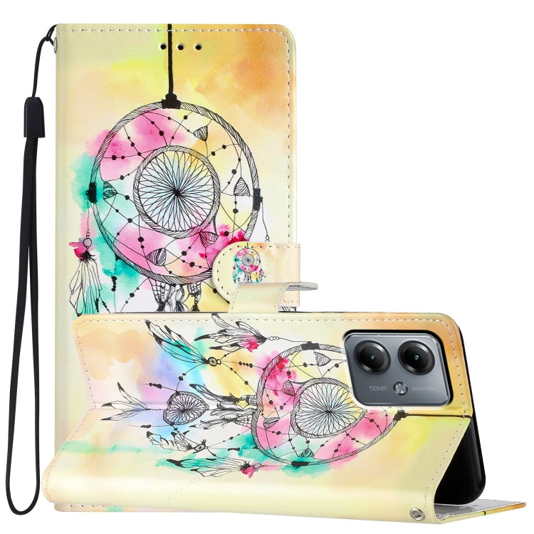 Funda de Cuero para Motorola Moto G14 con Dibujo Coloreado Atrapasueños