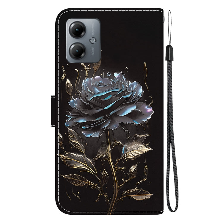 Funda de Cuero para Motorola Moto G14 con Dibujo Coloreado y Textura de Cristal (Rosa Negra)