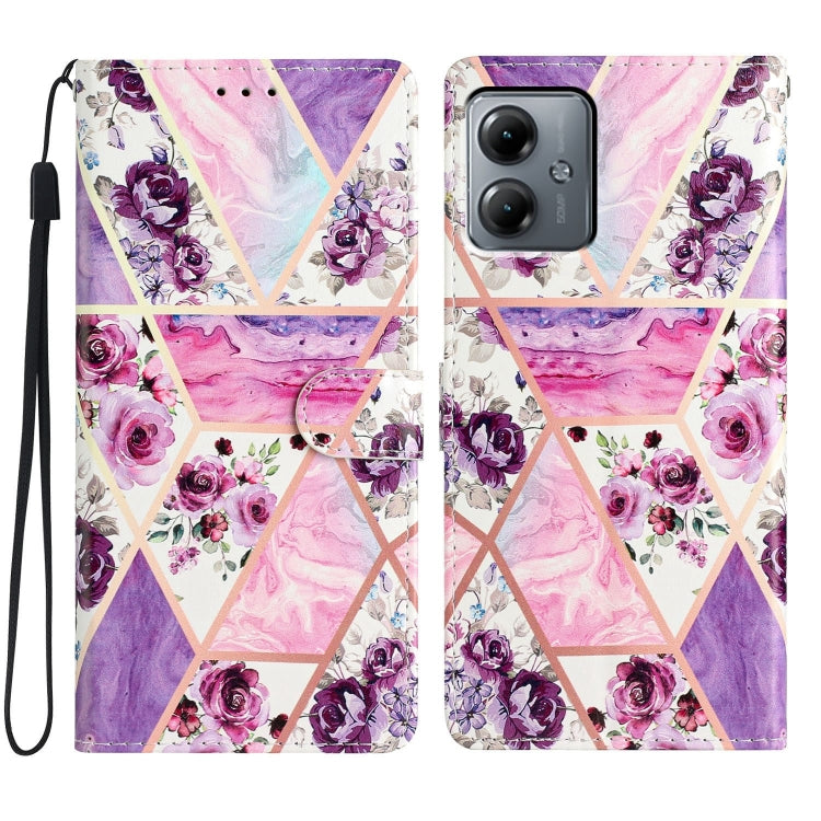 Funda de Cuero para Motorola Moto G14 con Dibujo Coloreado Mármol (Morado)