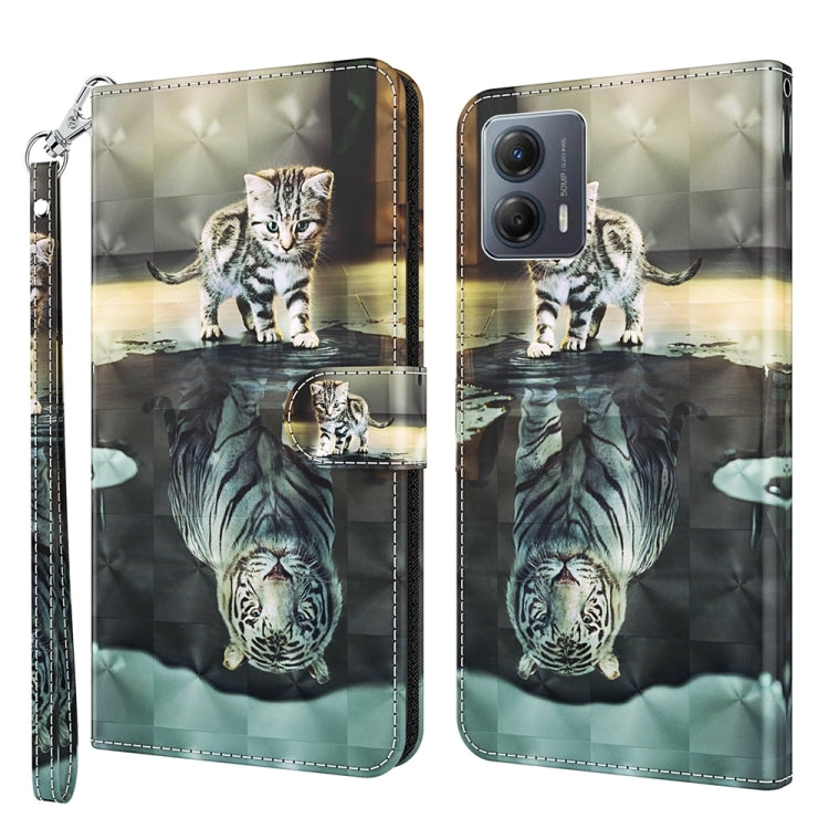 Funda de Cuero para Motorola Moto G14 con Tapa y Patrón de Pintura 3D (Gato Tigre)