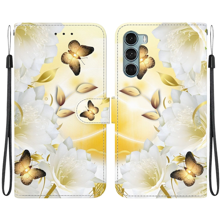 Funda de Cuero para Motorola Moto G200 5G con Dibujo Epiphyllum Mariposa Dorada (Textura Cristal)