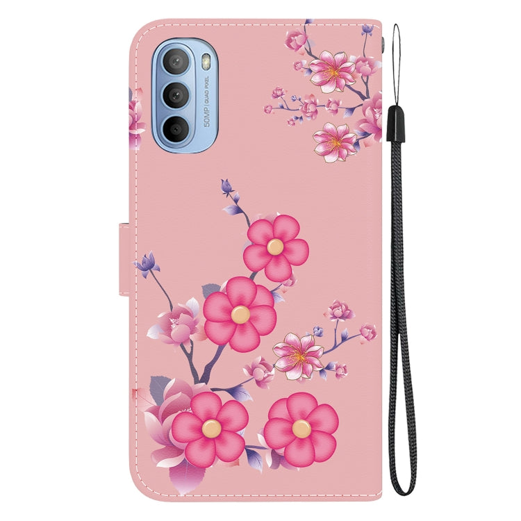 Funda de Cuero para Motorola Moto G31 y G41 con Dibujo Coloreado y Textura de Cristal (Flores de Cerezo)