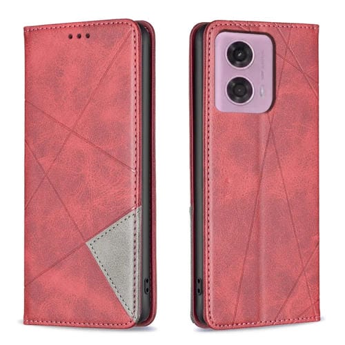 Funda de Cuero Magnético para Motorola Moto G34 5G con Textura de Rombo (Rojo)