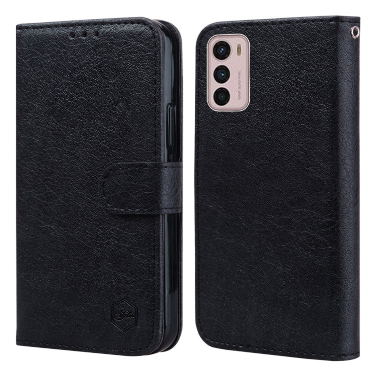 Funda para Motorola Moto G42 Sensación de Piel Textura Cuero Aceitoso PU + TPU (Negro)