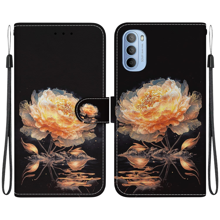Funda de Cuero para Motorola Moto G51 con Dibujo Coloreado y Textura de Cristal (Peonía Dorada)