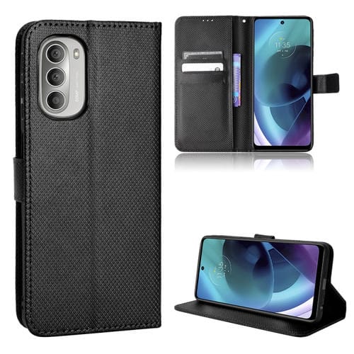 Caja de Cuero para Motorola Moto G52J 5G con Textura de Diamante (Negro)