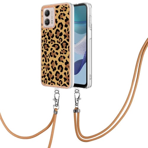 Estuche para Motorola Moto G53 G13 G23 IMD Doble Cara Galvanoplastia con Cordón (Leopardo)