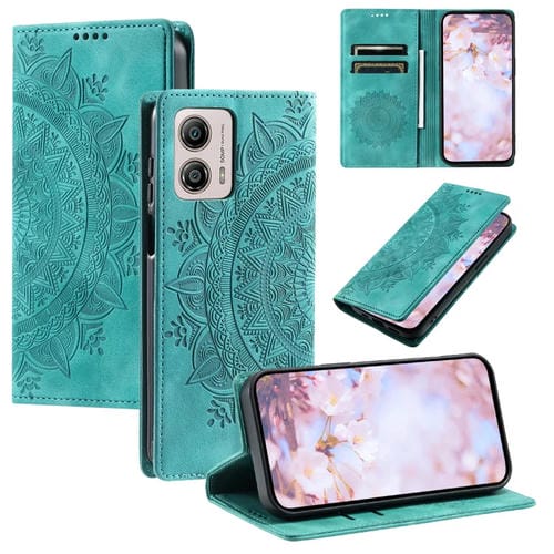 Funda de Cuero Magnética en Relieve para Motorola Moto G53 Totem (Verde)