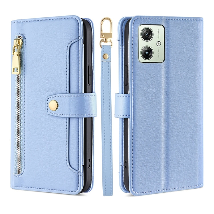 Funda de Cuero para Motorola Moto G54 5G Eu Edition Lite con Textura de Oveja y Cremallera Cruzada (Azul)