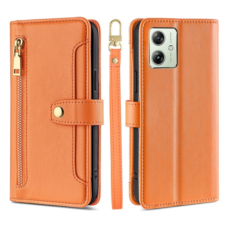 Funda de Cuero para Motorola Moto G54 5G Eu Edition Lite con Textura de Oveja y Cremallera Cruzada (Naranja)