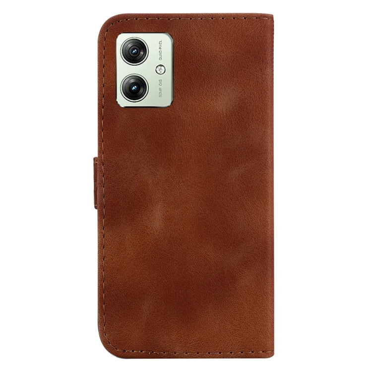 Funda de Cuero para Motorola Moto G54 con Relieve en Forma de 7 (Marrón)